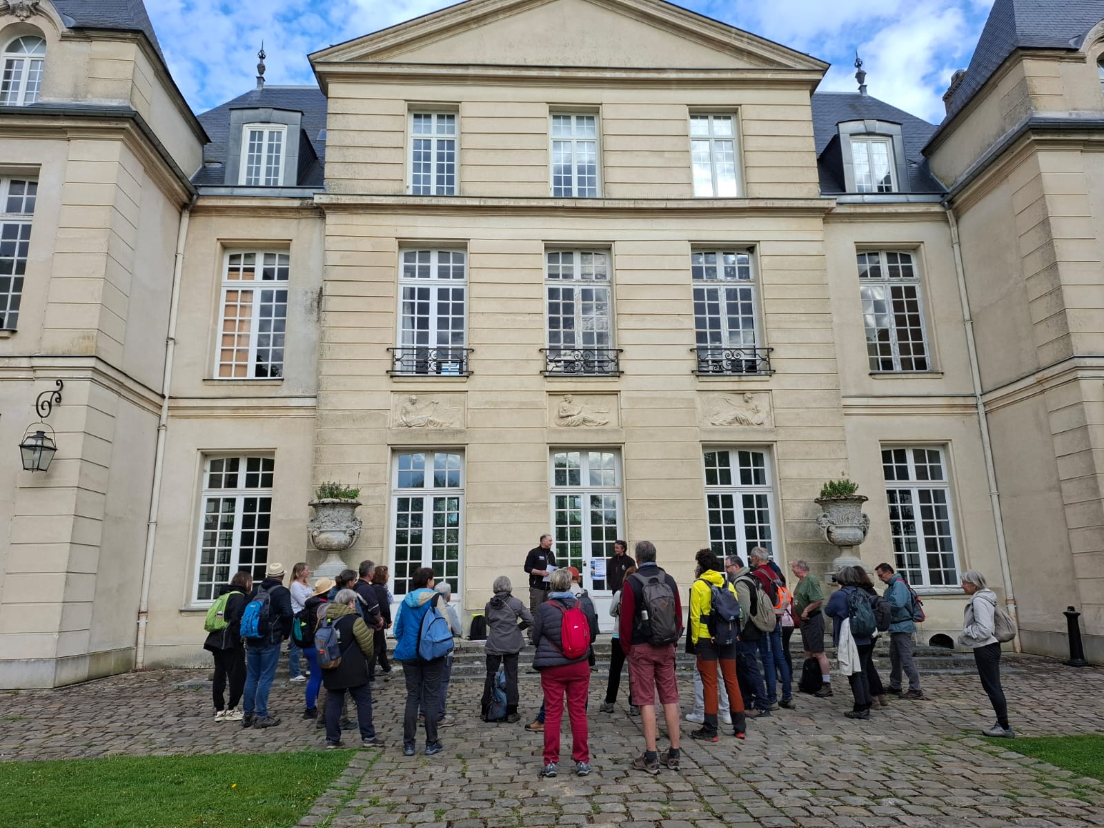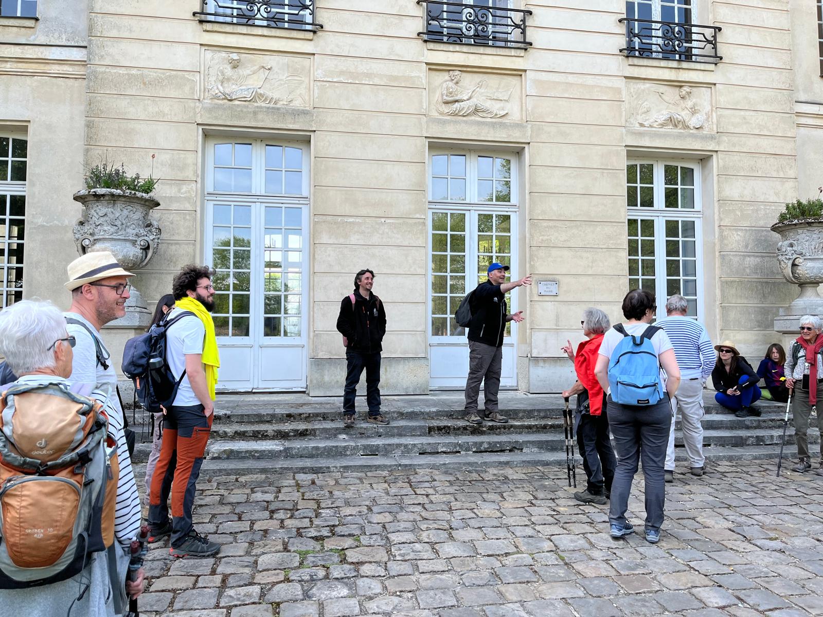 Le rassemblement a eu lieu au parking du château pour un départ effectif depuis la cour d’honneur du château du Mesnil Saint Denis après présentation des différents intervenants: