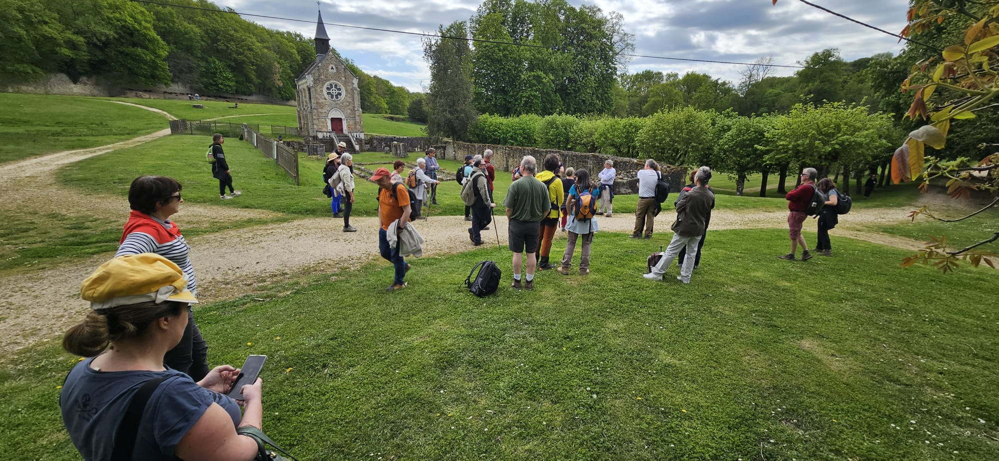 Après un 1er arrêt à la Ferme de Beaurain, puis devant Fort Manoir, le groupe a poursuivi le chemin pour descendre ensuite à travers le vallon du Rhodon jusqu’au site de Port Royal des Champs. A été évoquée l’histoire des lettrés et savants du Grand Siècle (Les médecins et botanistes Jean Hamon et Denis Dodart, mais aussi bien sûr Racine, Pascal, Gassendi, La Quintinie, Mme de Sévigné…), à travers divers points remarquables croisés en chemin (château du Mesnil Saint Denis, la ferme de Beaurain, le fort Manoir, La croix Mathurine, la ferme de Champgarnier, la source du Rhodon, l’ancienne abbaye de Port royal des Champs…).
